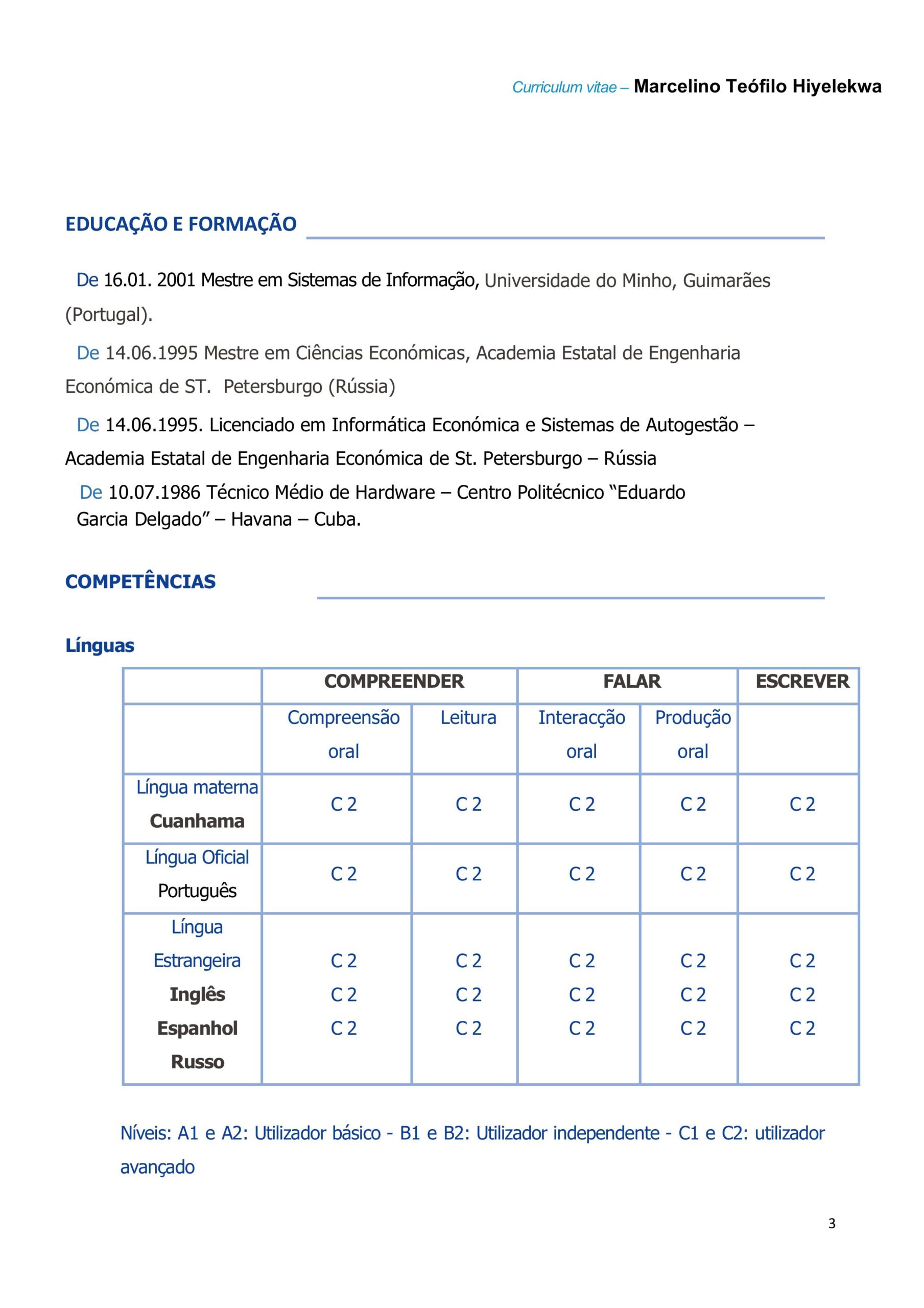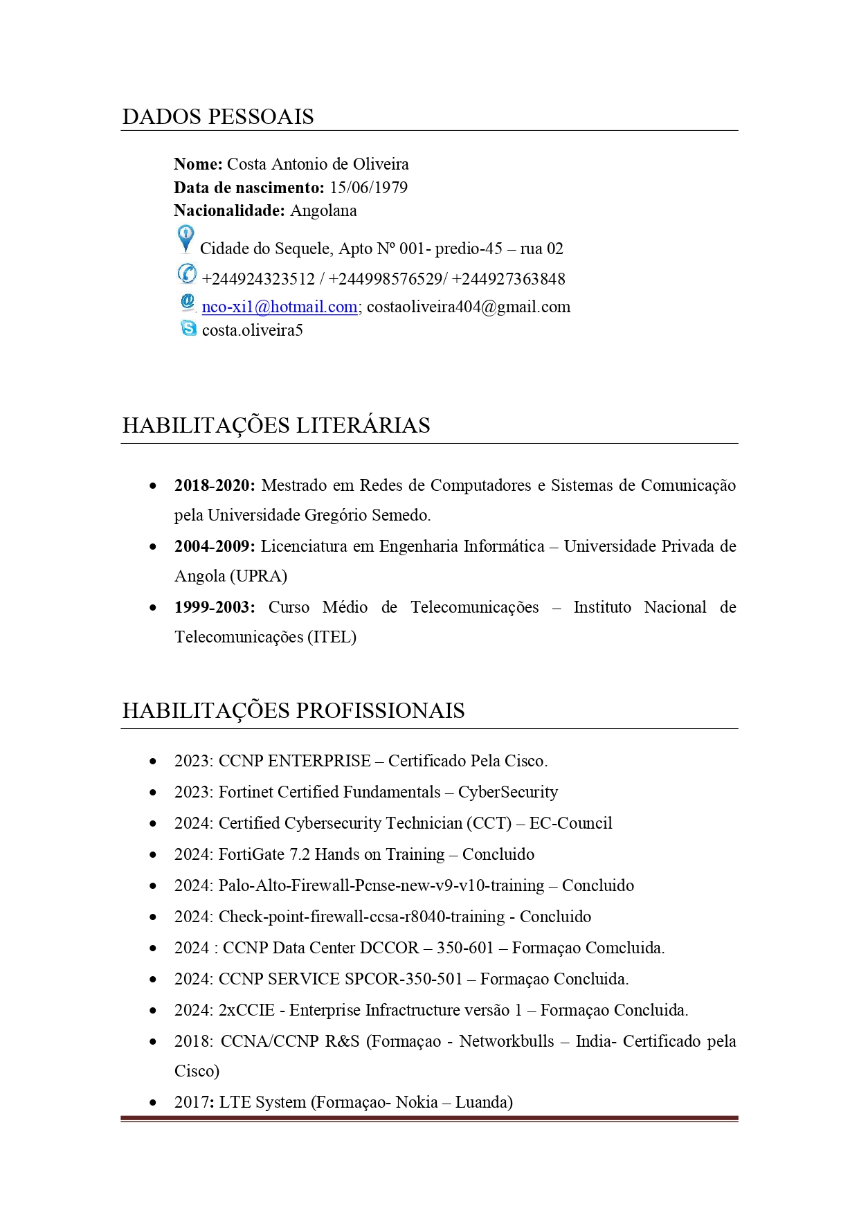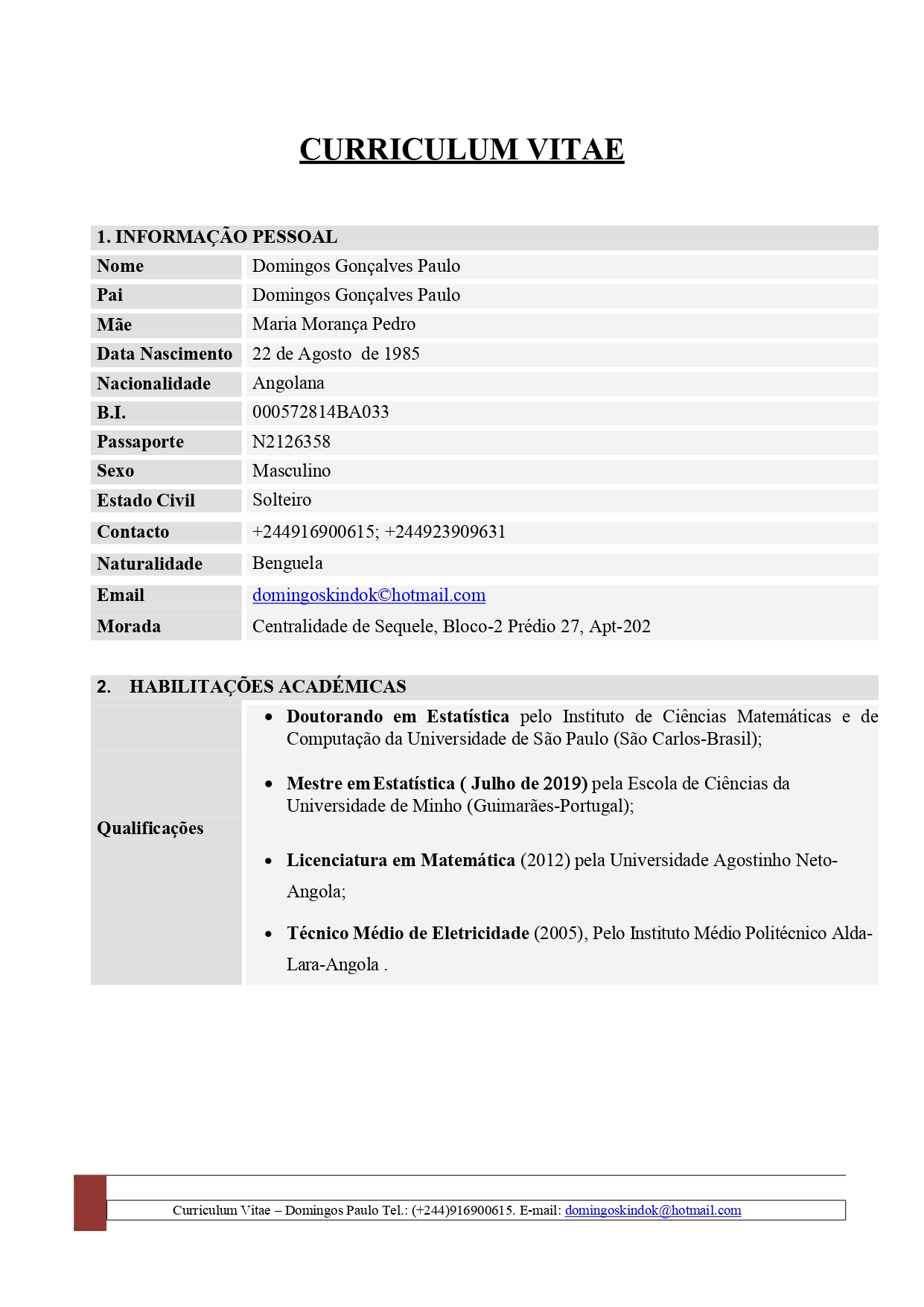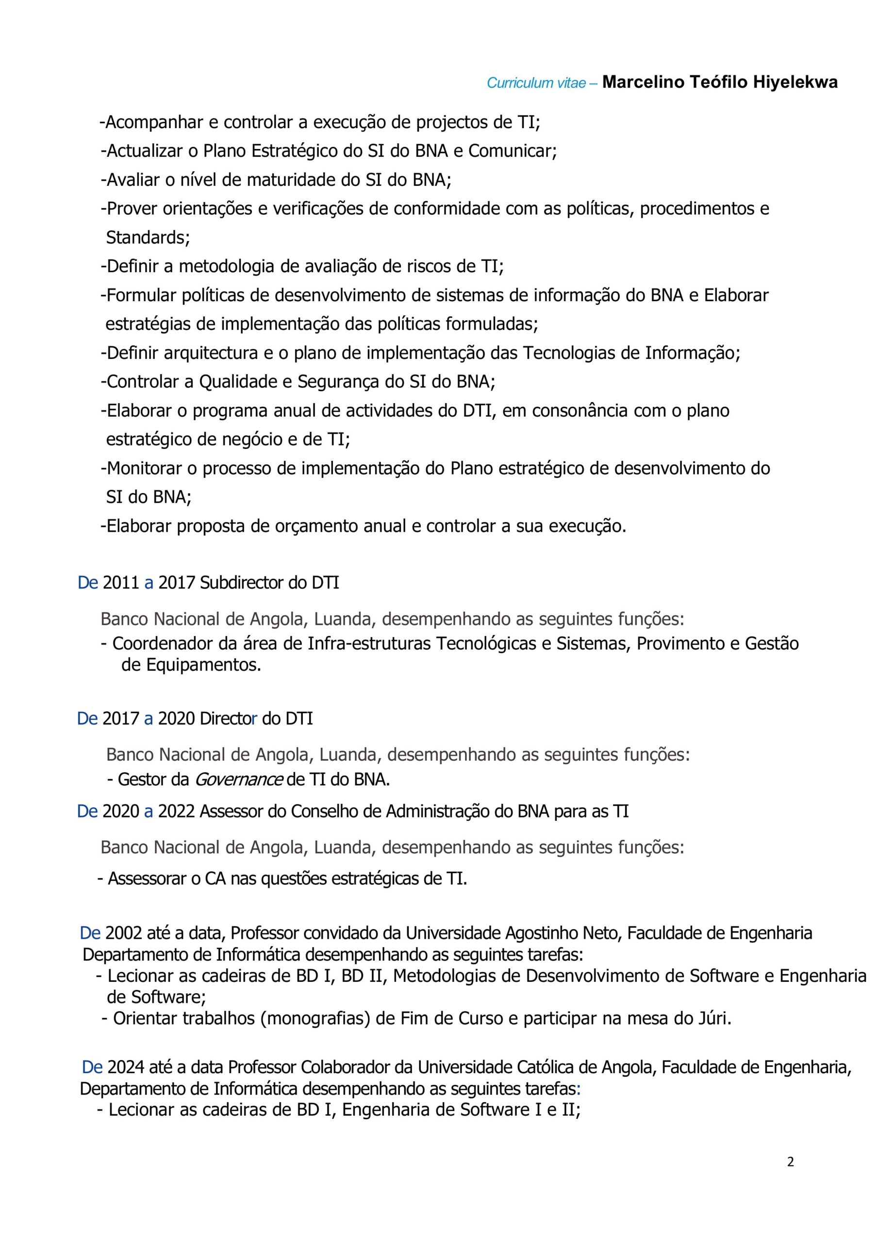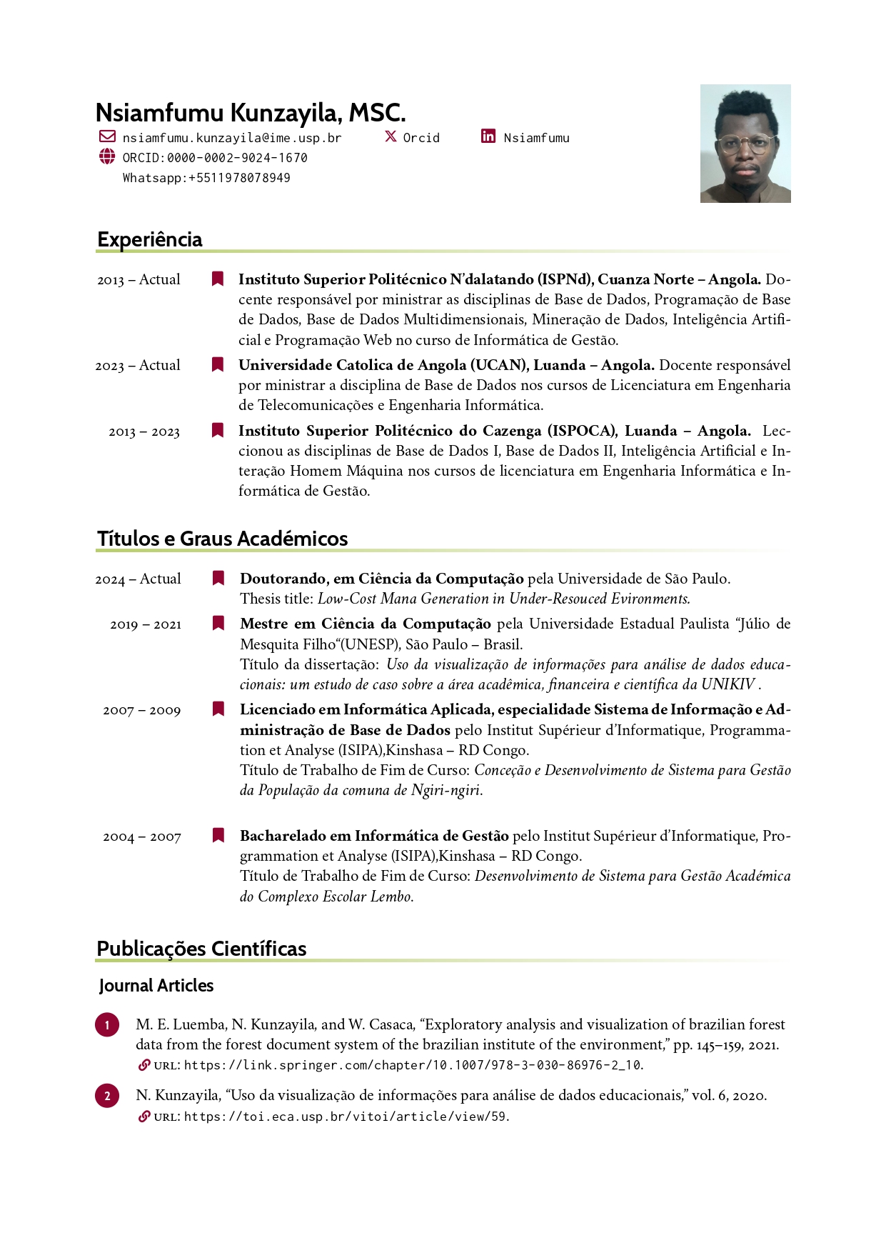 - Grau Académico: Licenciado em: Eng.ª Informática pela UCAN (2010) | Mestrado em Transformação Digital pela Funiber (em curso)