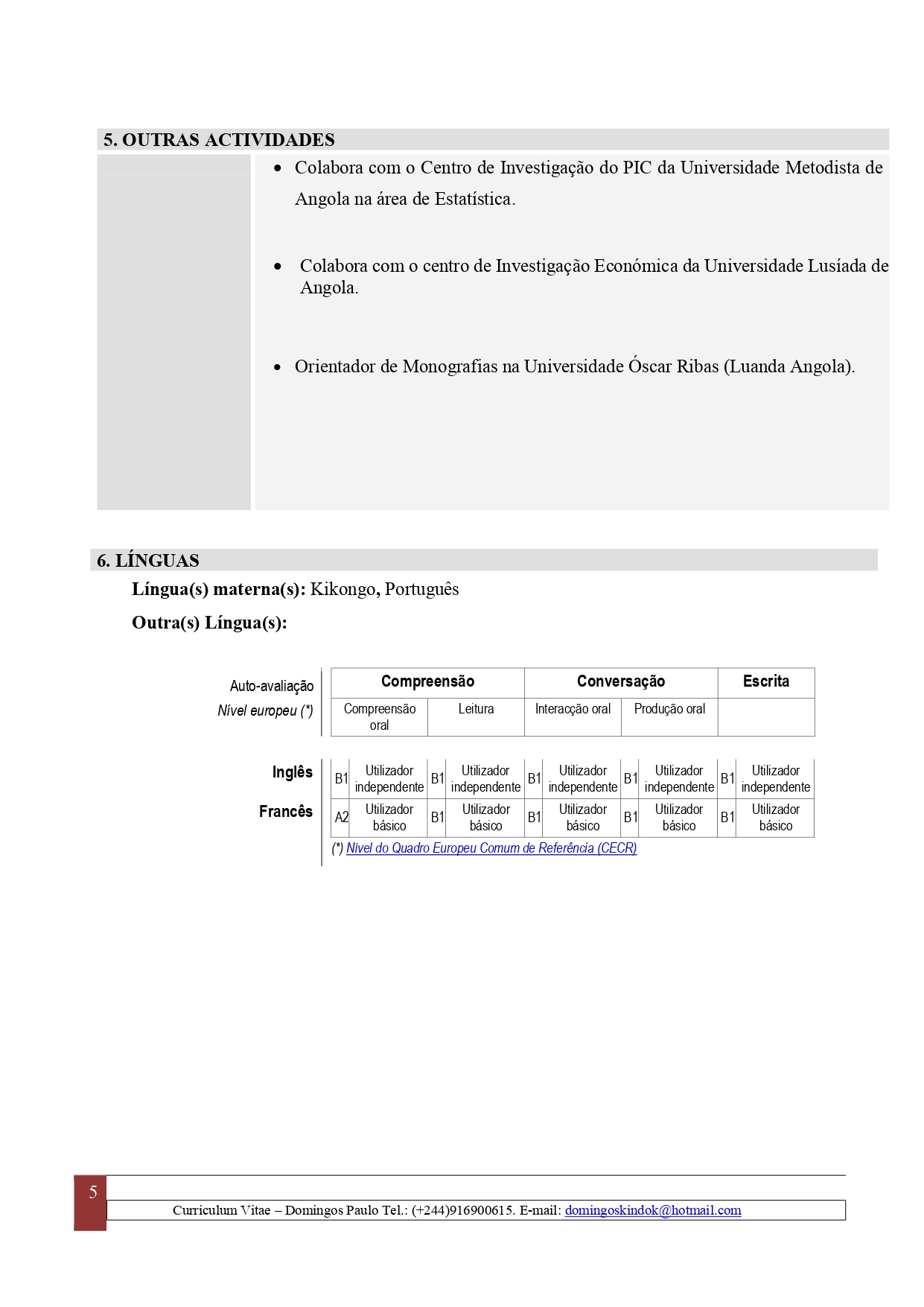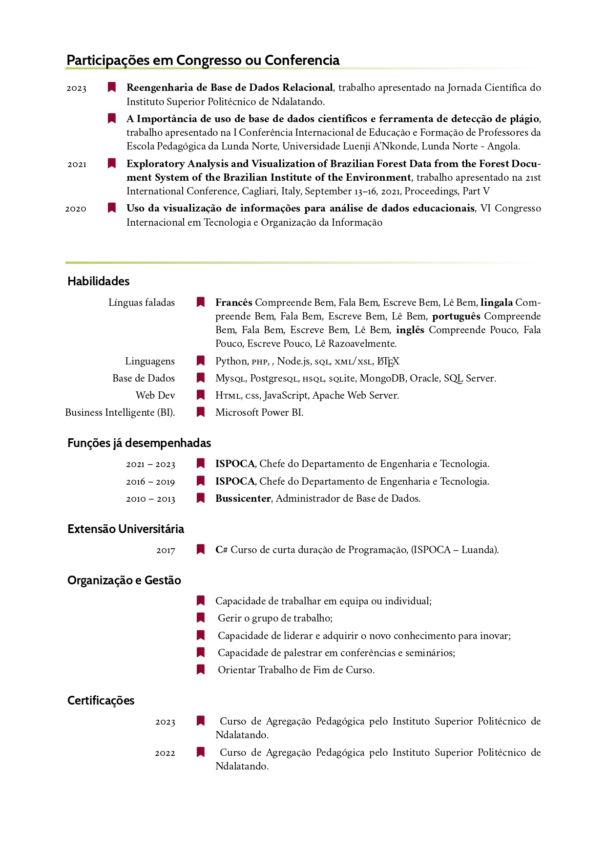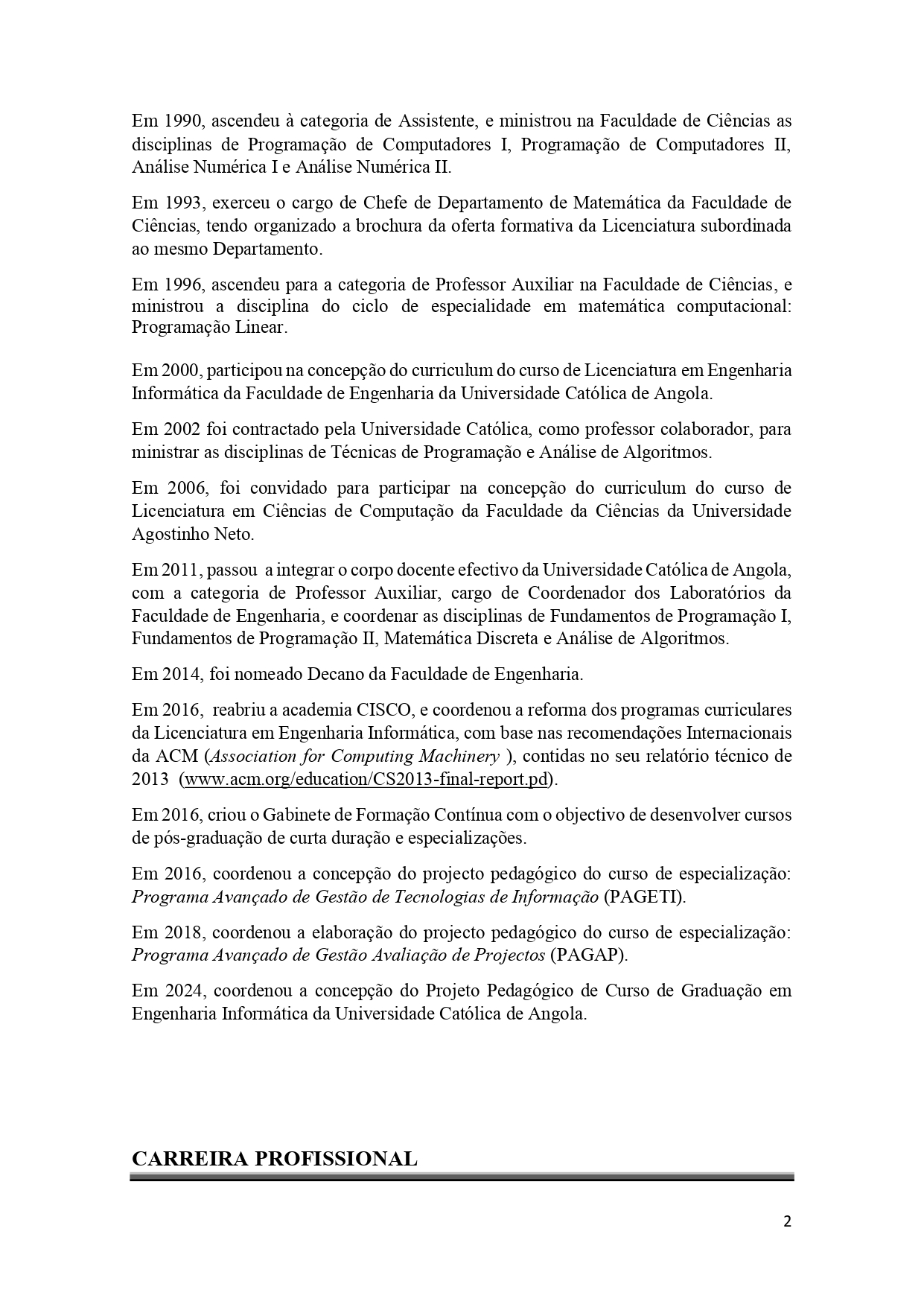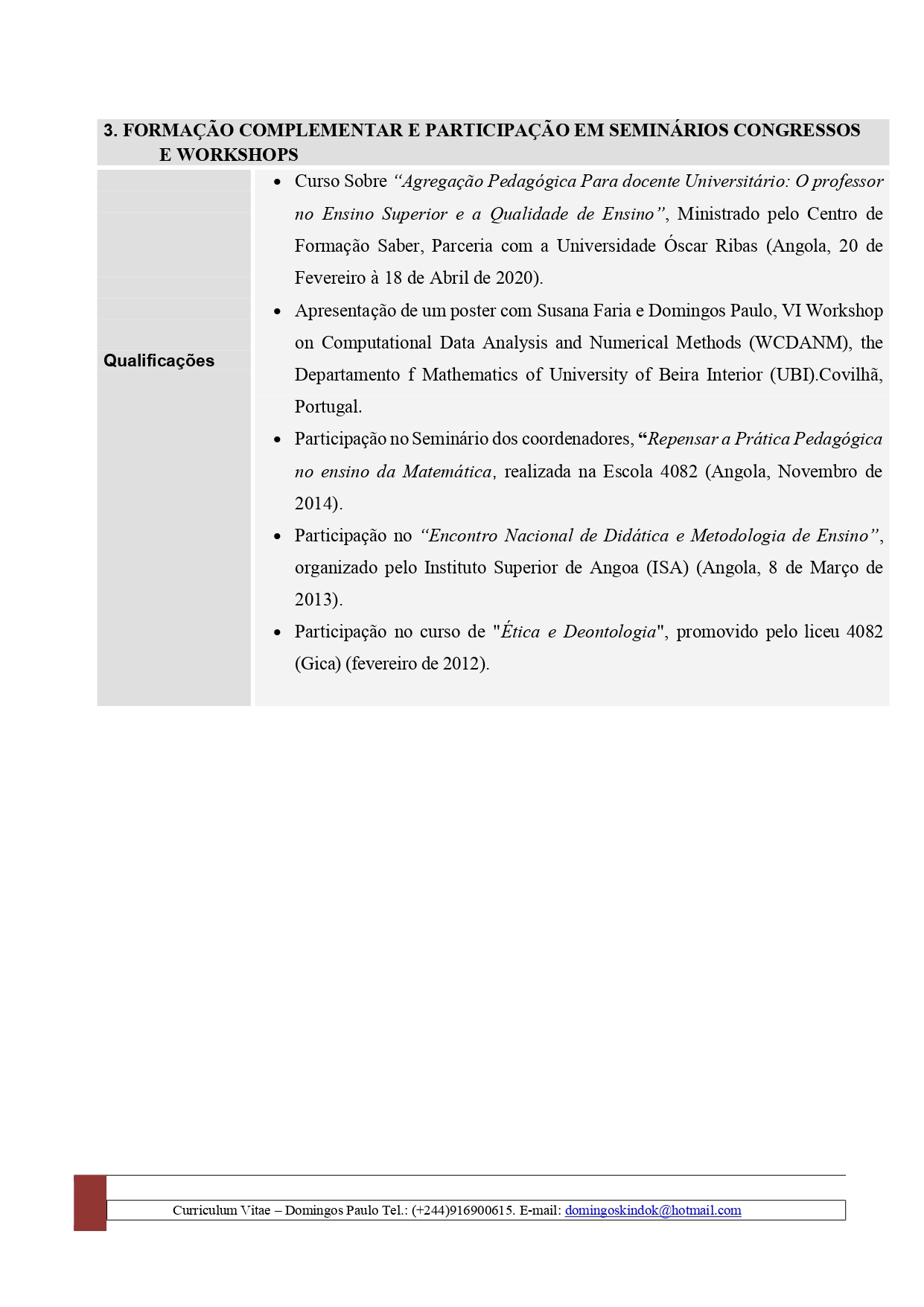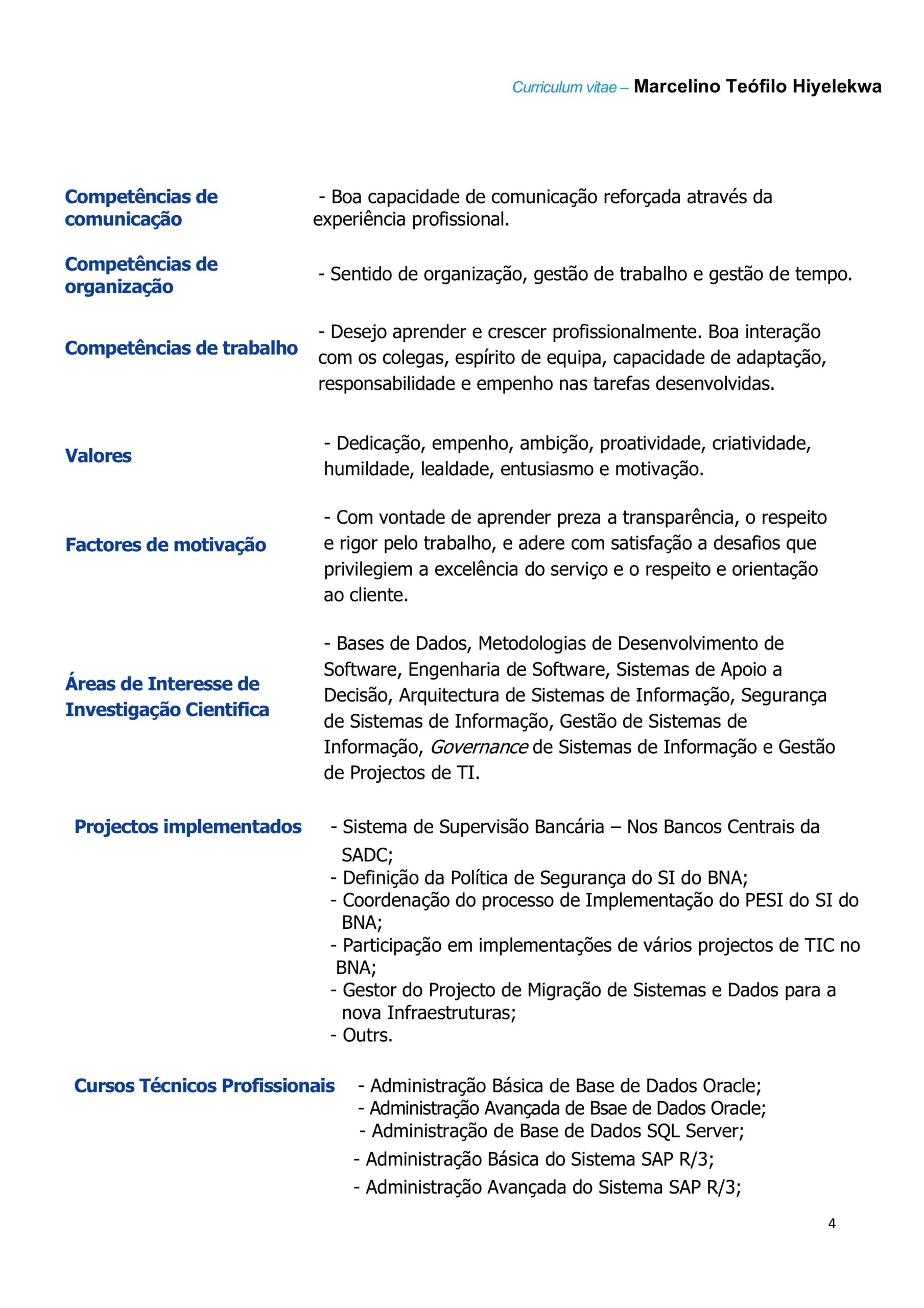 - Grau Académico: Licenciado em: Eng.ª Informática pela UCAN (2010) | Mestrado em Transformação Digital pela Funiber (em curso)