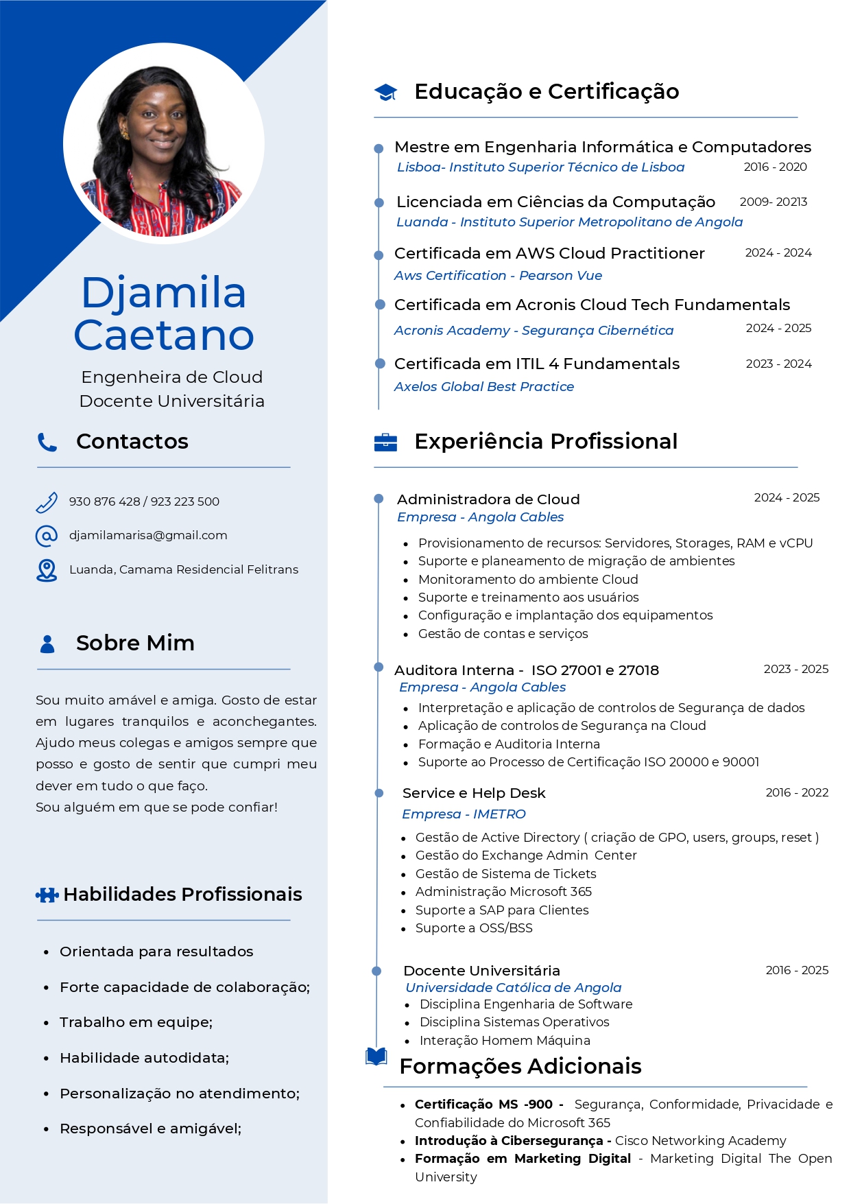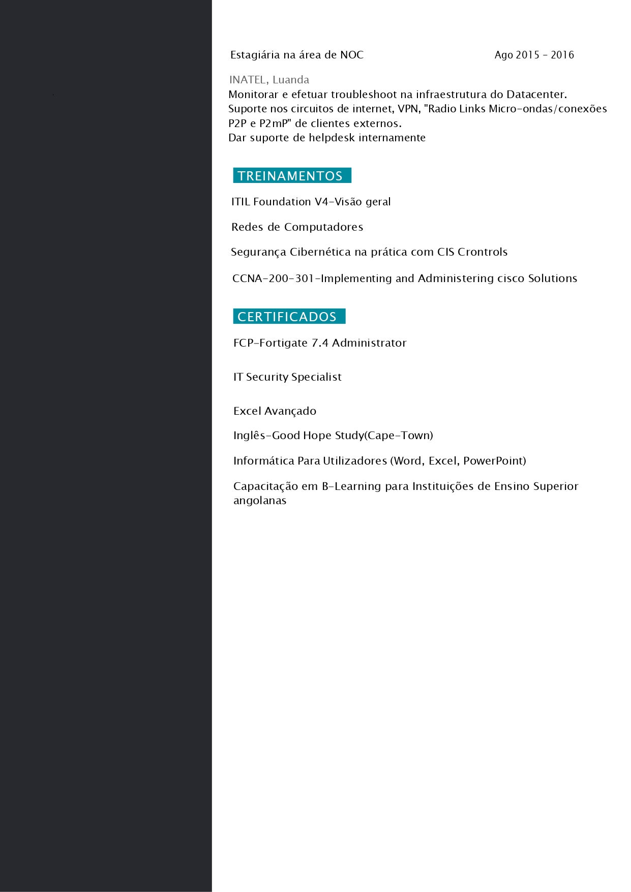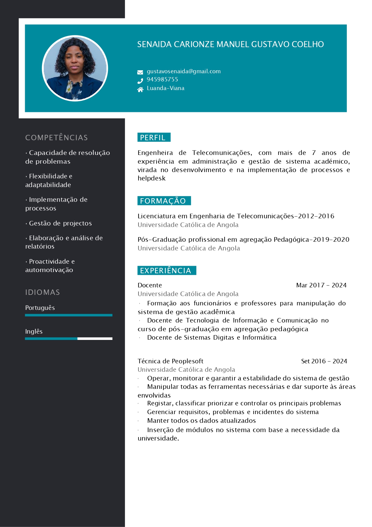 - Grau Académico: Licenciatura em Eng.ª Informática pela UCAN - 2020