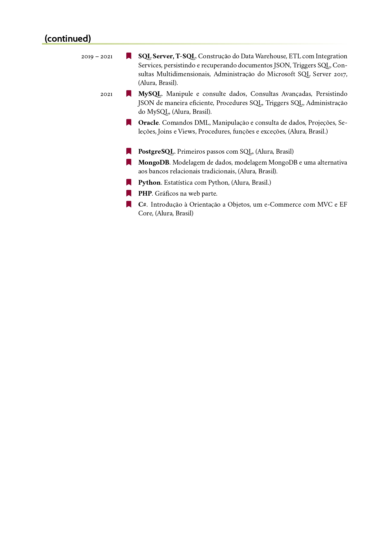 - Professor de: Fundamentos de Programação I, II, Algoritmos e Complexidade, Matemática Discreta